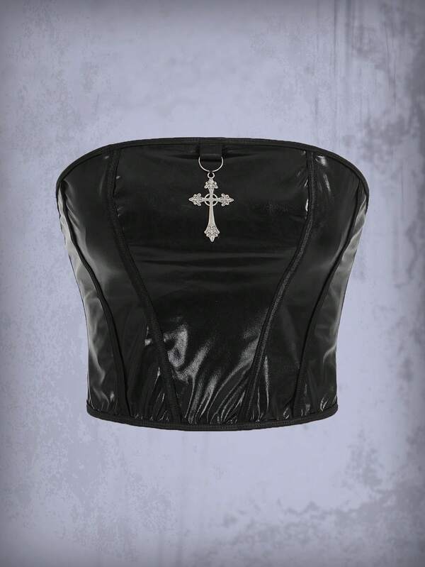 ROMWE Goth Solid PU Tube Top