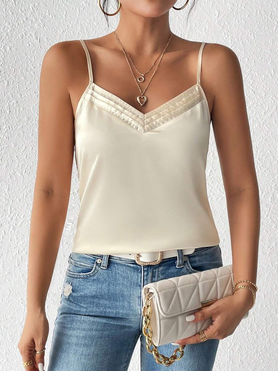 SHEIN Frenchy Solid Plicated Detail Cami Top
