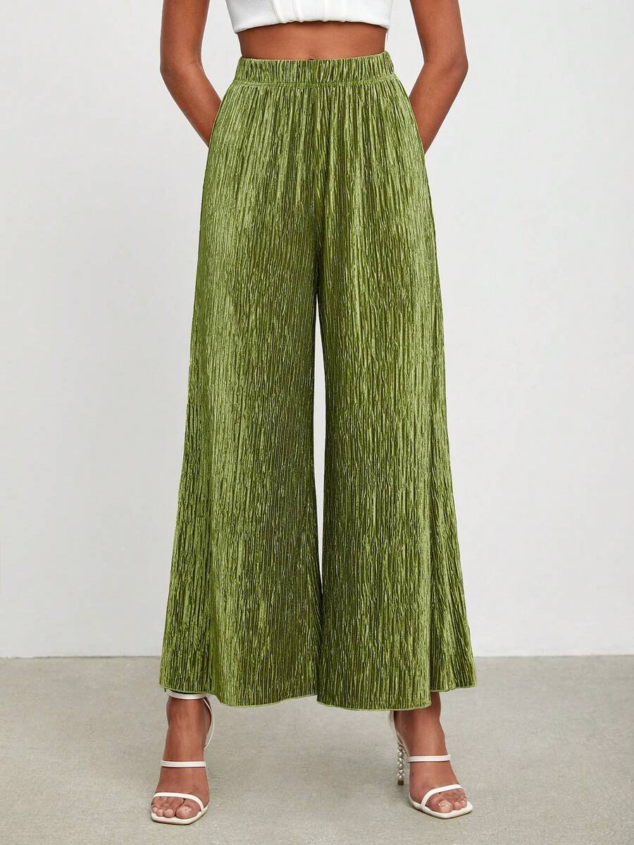 BELANGE HANDMADE Solid Plisse Wide Leg Pants