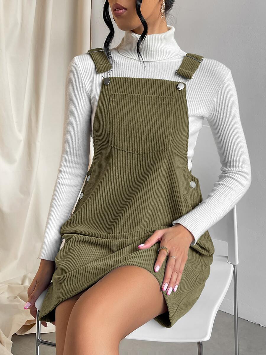 SHEIN Qutie Solid Pocket Patched Overall Dress Without Sweater