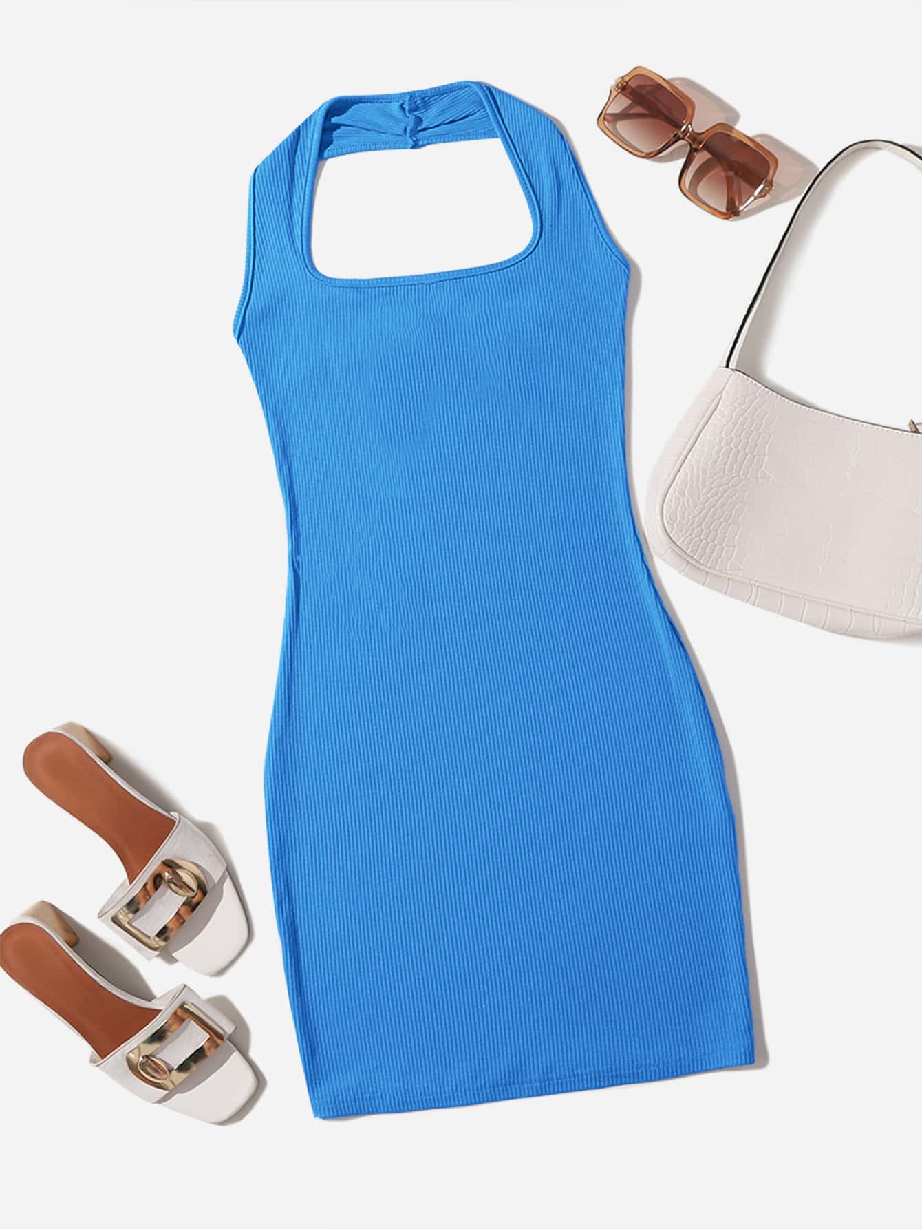 SHEIN Qutie Solid Rib-knit Backless Dress