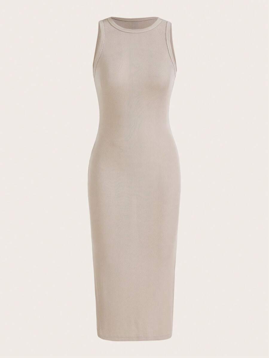SHEIN EZwear Solid Ribbed Knit Bodycon Dress