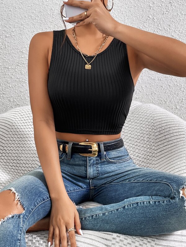 SHEIN Frenchy Solid Ribbed Knit Crop Tank Top