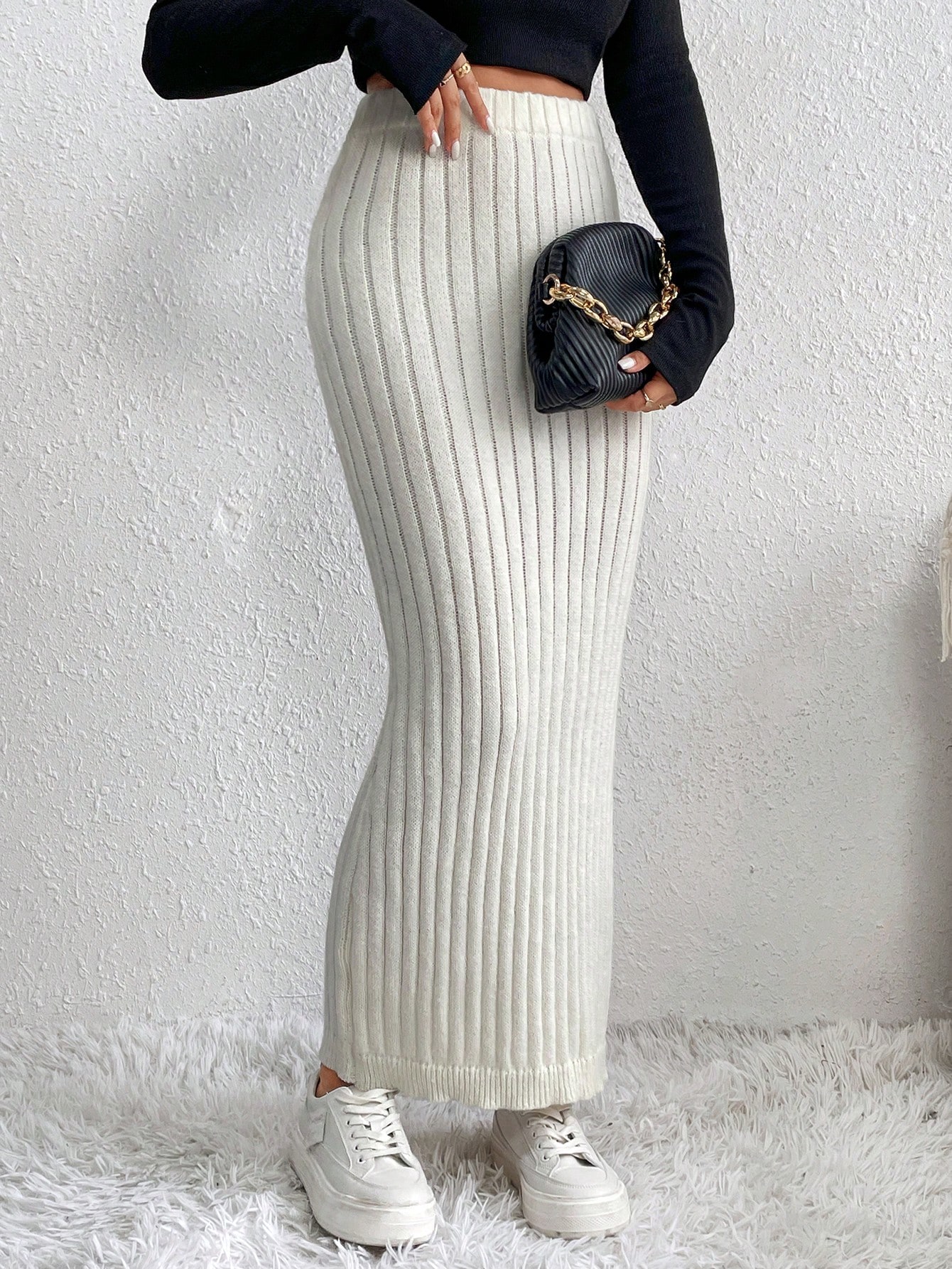 SHEIN Essnce Solid Ribbed Knit Skirt
