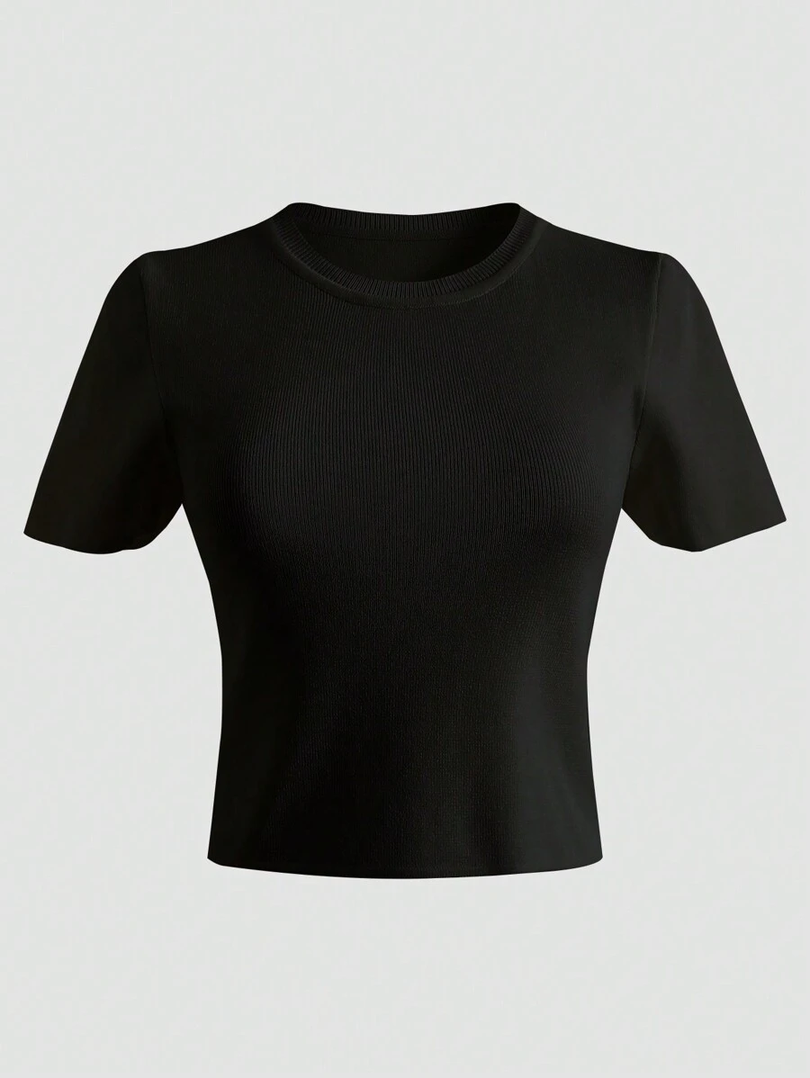 Solid Ribbed Knit Tee