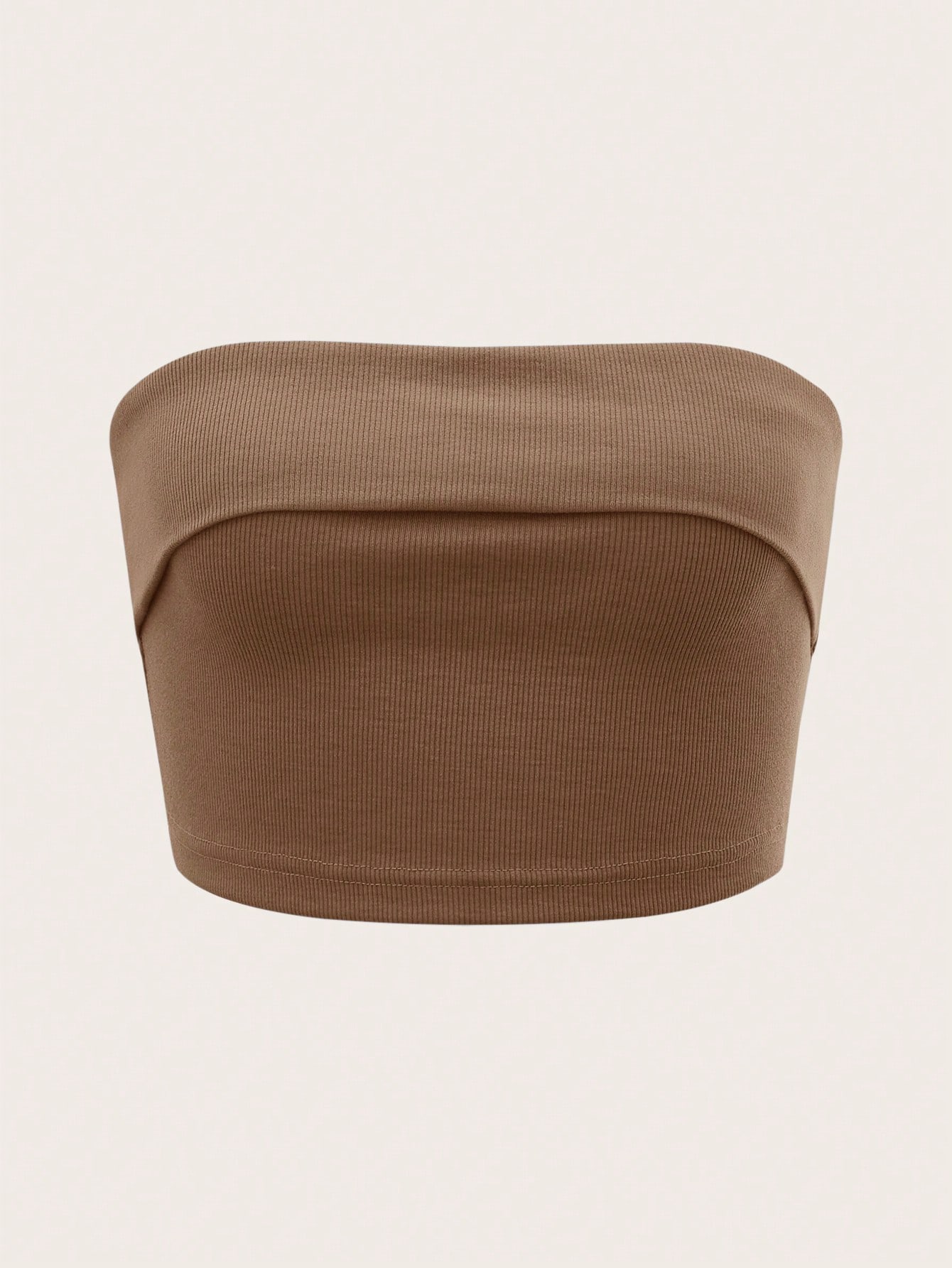 SHEIN ICON Solid Ribbed Knit Tube Top