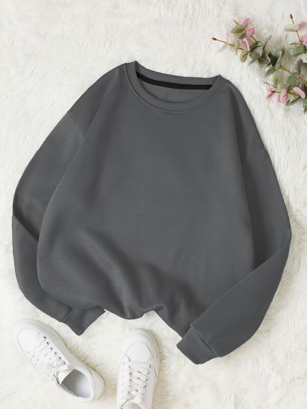 Solid Round Neck Thermal Pullover