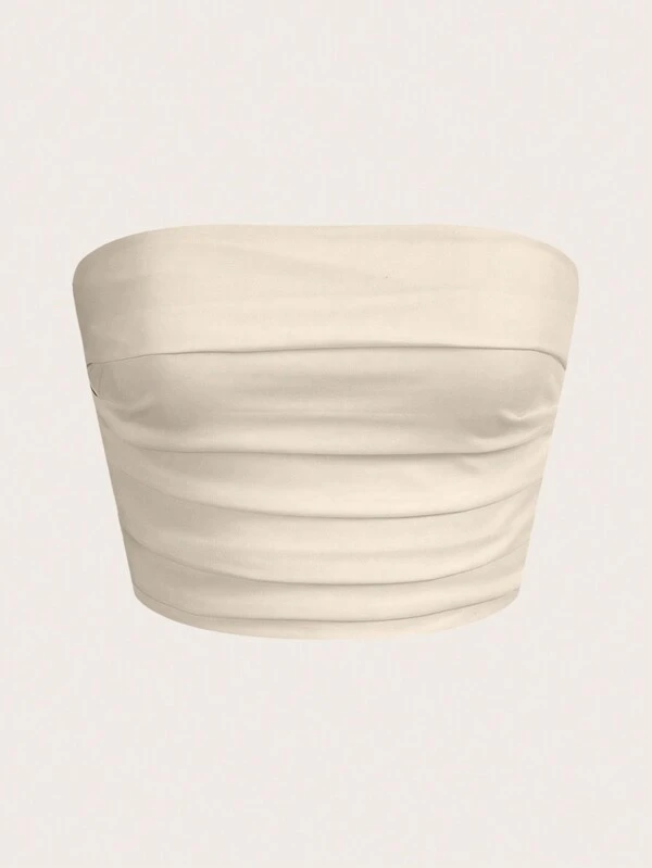SHEIN EZwear Solid Ruched Crop Tube Top