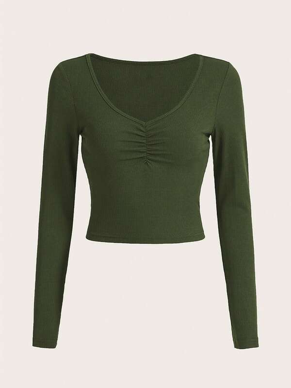 ROMWE Fairycore Solid Ruched Front Crop Tee