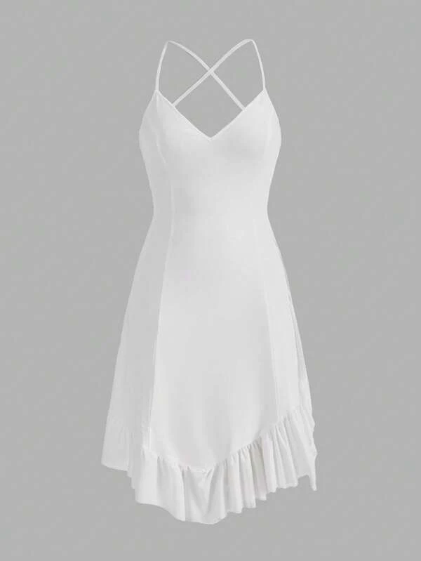 SHEINNeu Solid Ruffle Hem Cami Dress