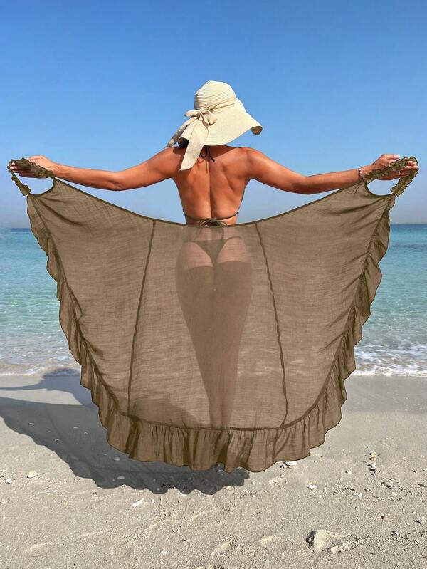 SHEIN SHEIN Swim Vcay Solid Ruffle Trim Kimono