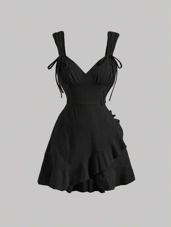 SHEIN MOD Solid Ruffle Trim Tie Detail Cami Dress