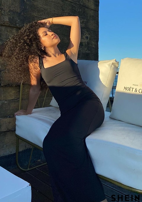 SHEIN BAE Solid Scoop Neck Tank Dress