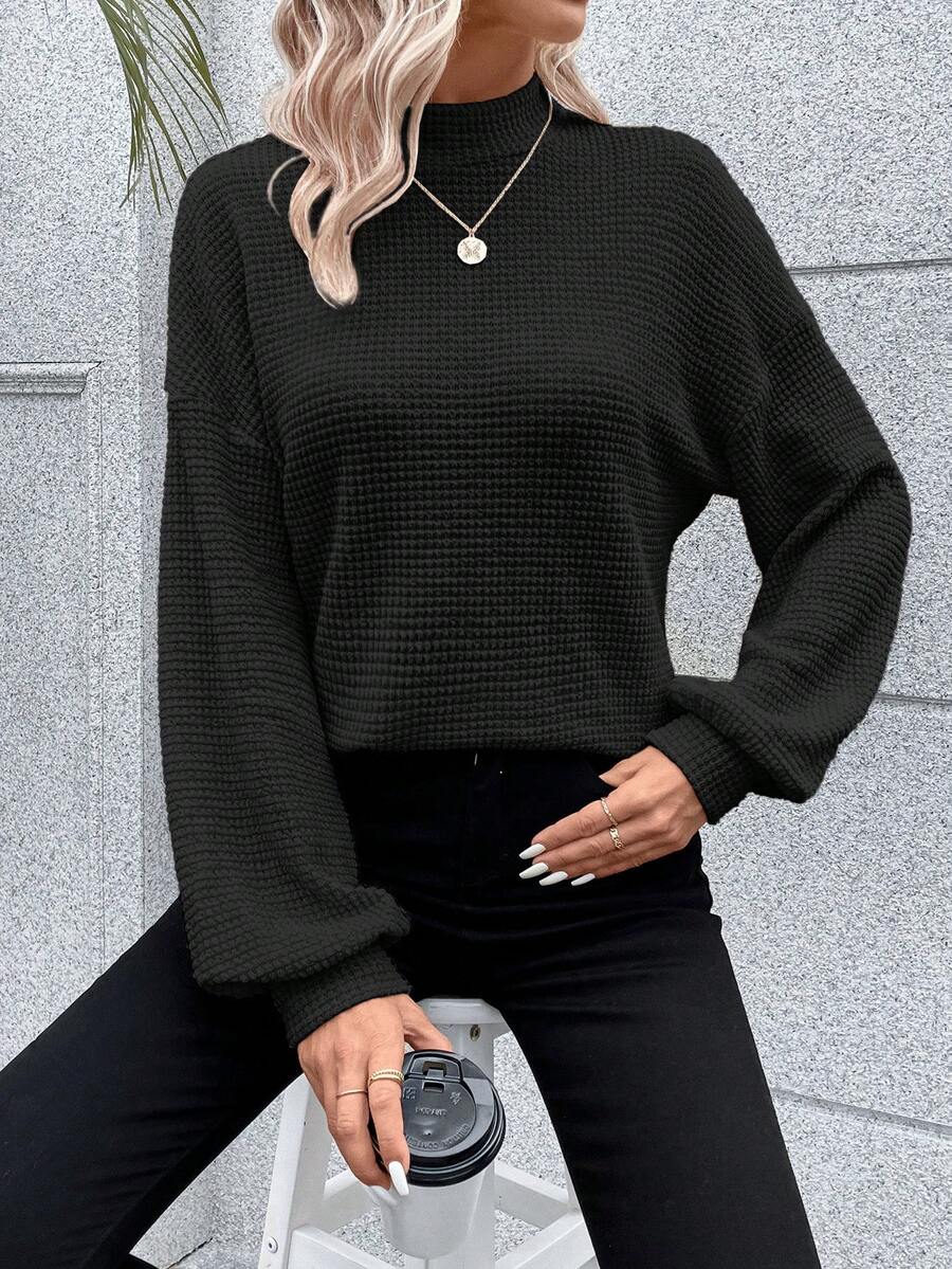 SHEIN Frenchy Solid Stand Collar Drop Shoulder T-shirt