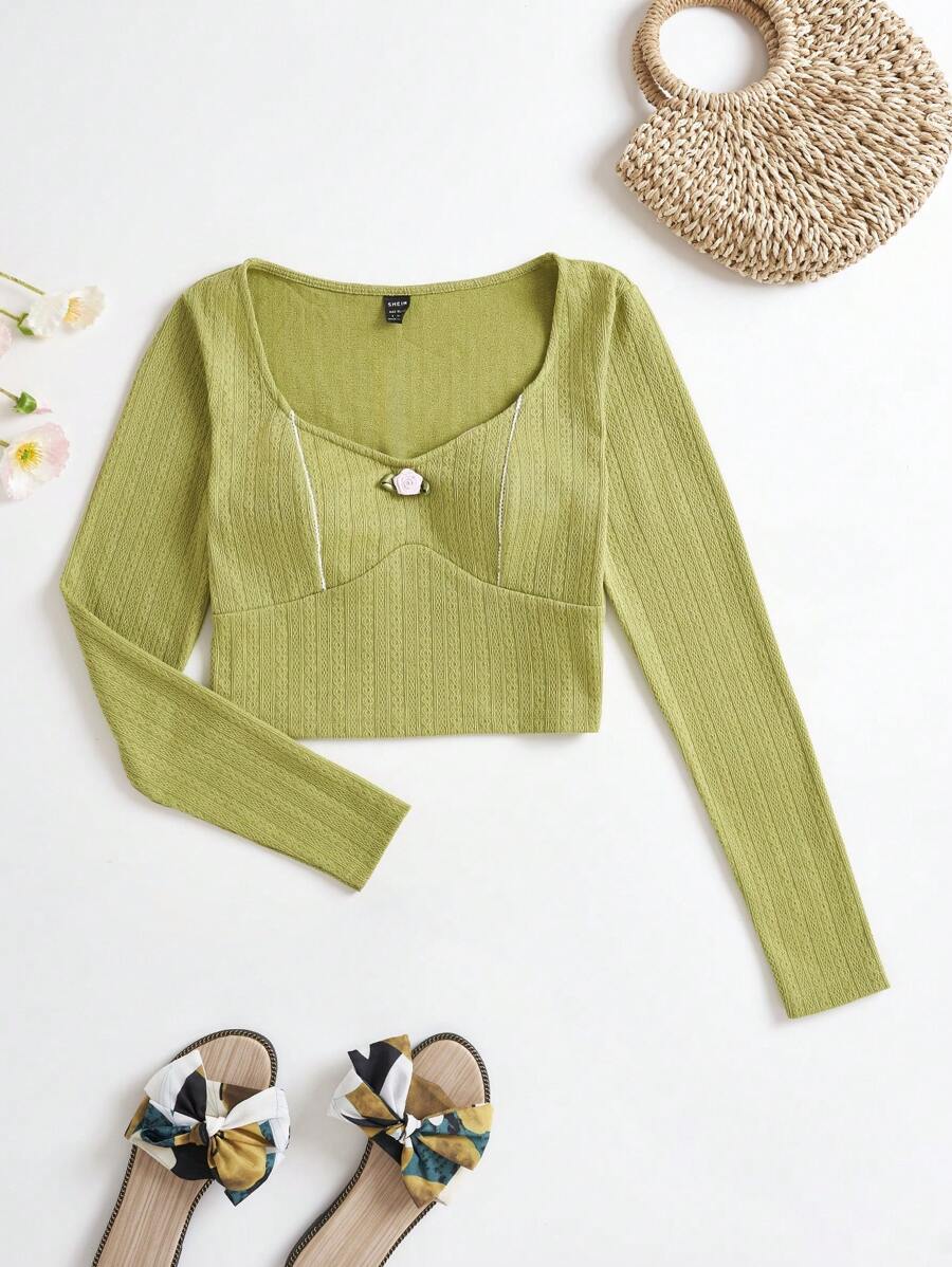 SHEIN WYWH Solid Sweetheart Neck Crop Tee