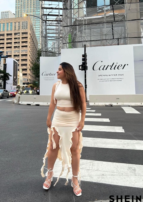 SHEIN Privé Solid Tank Top & Ruffle Trim Asymmetrical Hem Skirt