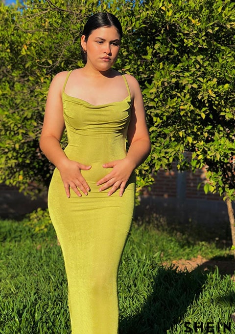SHEIN BAE Solid Tie Backless Ruched Dress