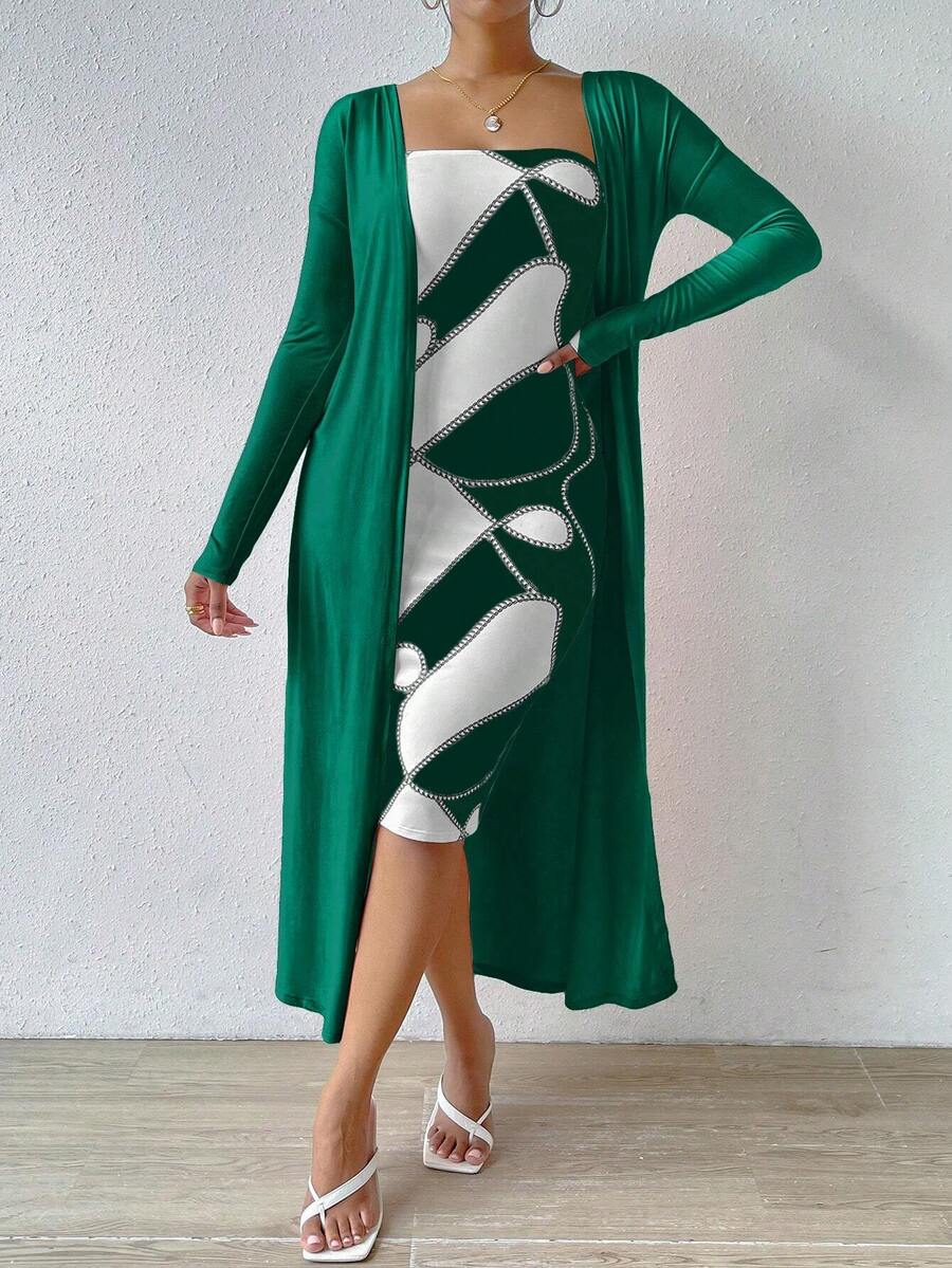 SHEIN Lady Solid Tube Bodycon Dress & Open Front Coat