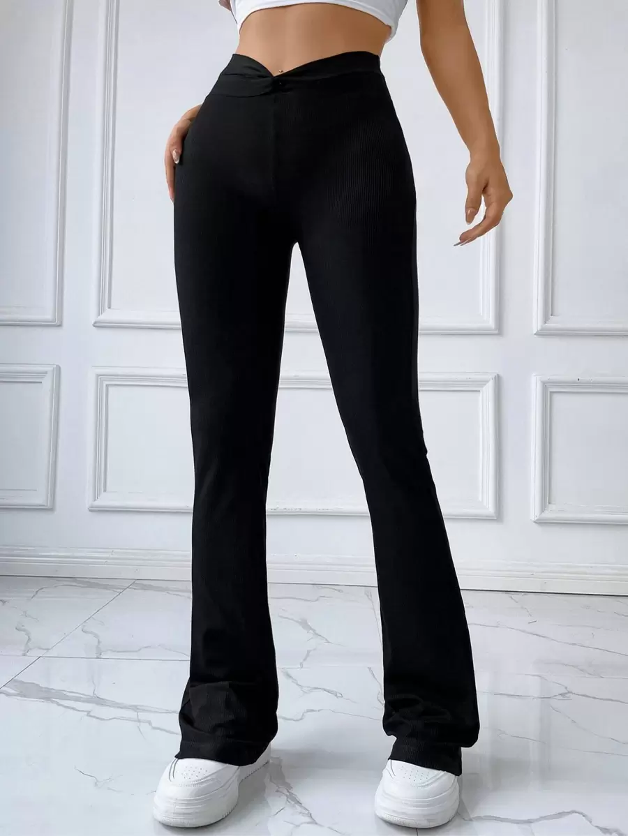 SHEIN EZwear Solid Twist Waist Flare Leg Pants