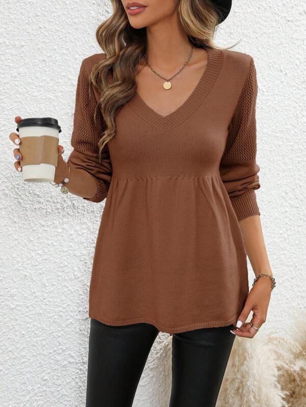 SHEIN LUNE Solid V Neck Peplum Sweater