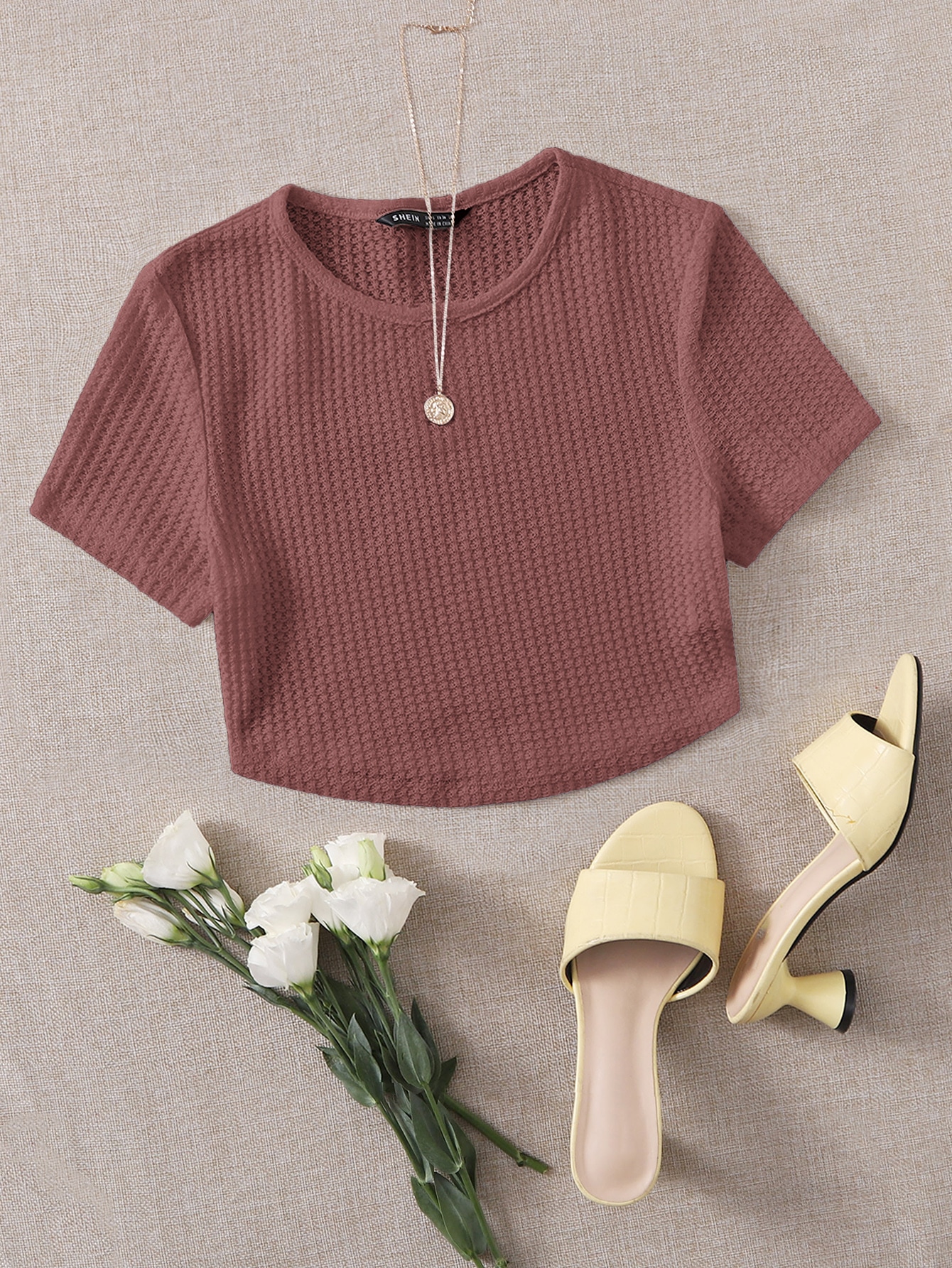 SHEIN EZwear Solid Waffle Knit Tee