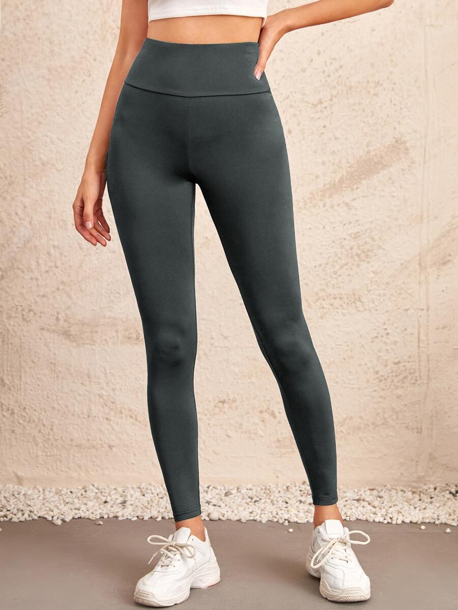 SHEIN EZwear Solid Wide Waistband Leggings