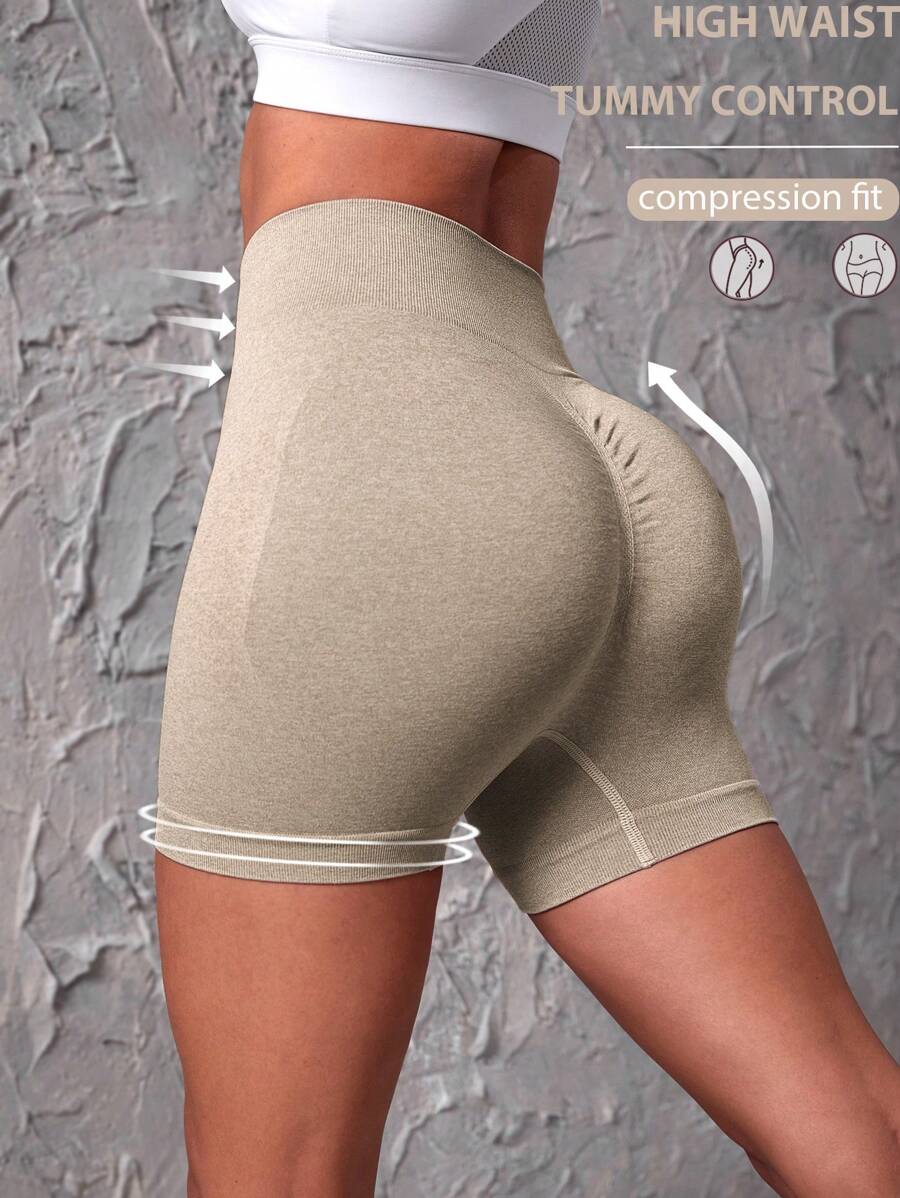 Yoga Basic Solid Wide Waistband Sports Shorts