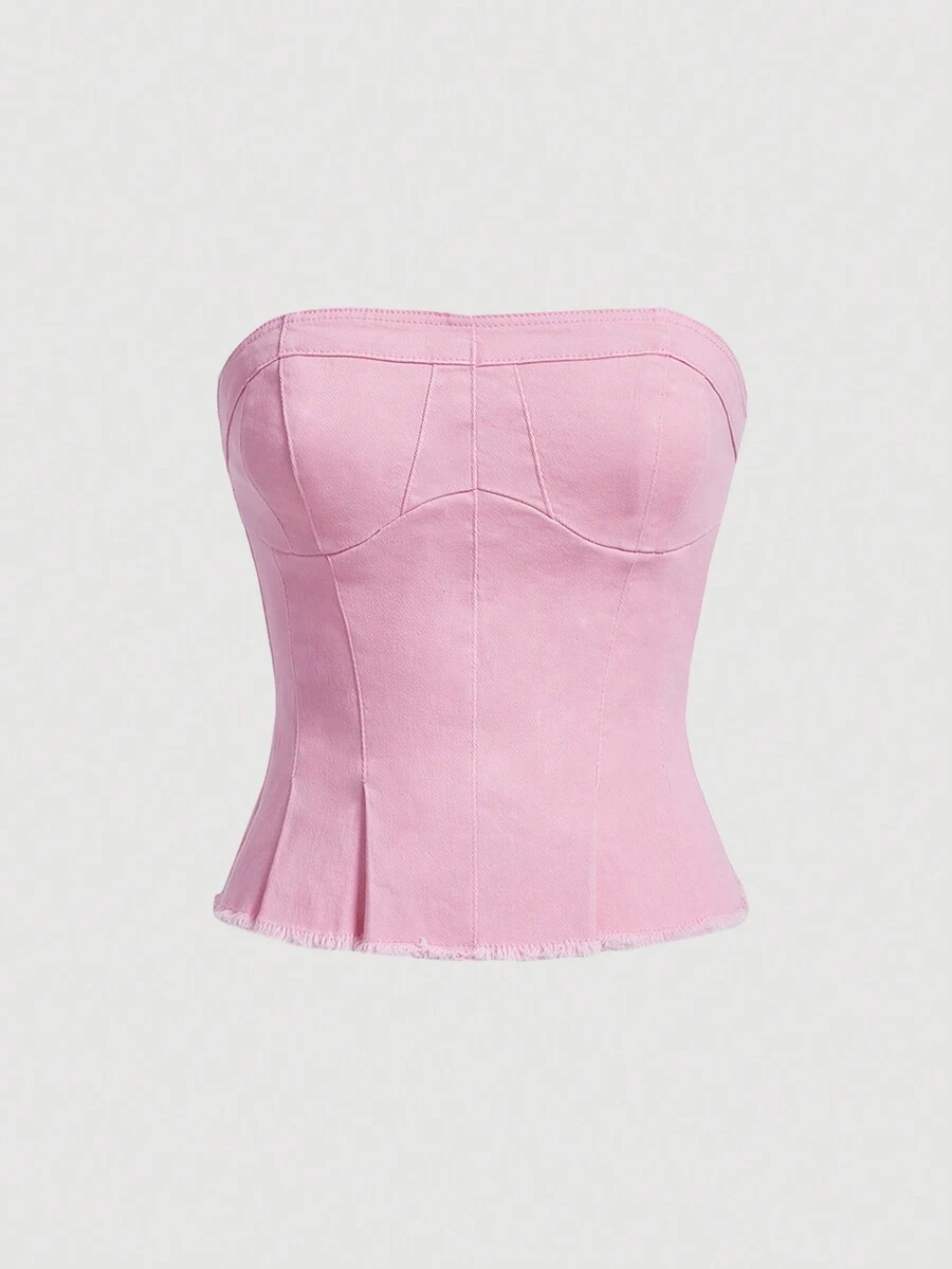 SHEIN MOD Solid Zip Back Tube Denim Top
