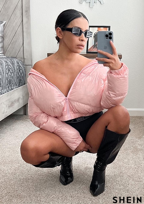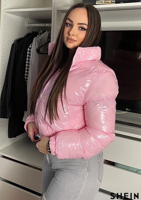 SHEIN Coolane Solid Zip Front Puffer Coat