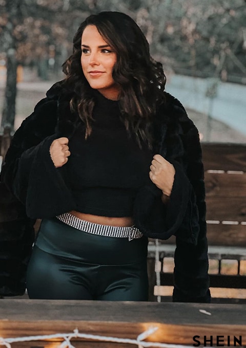 SHEIN Privé Solid Zip Up Crop Fuzzy Coat