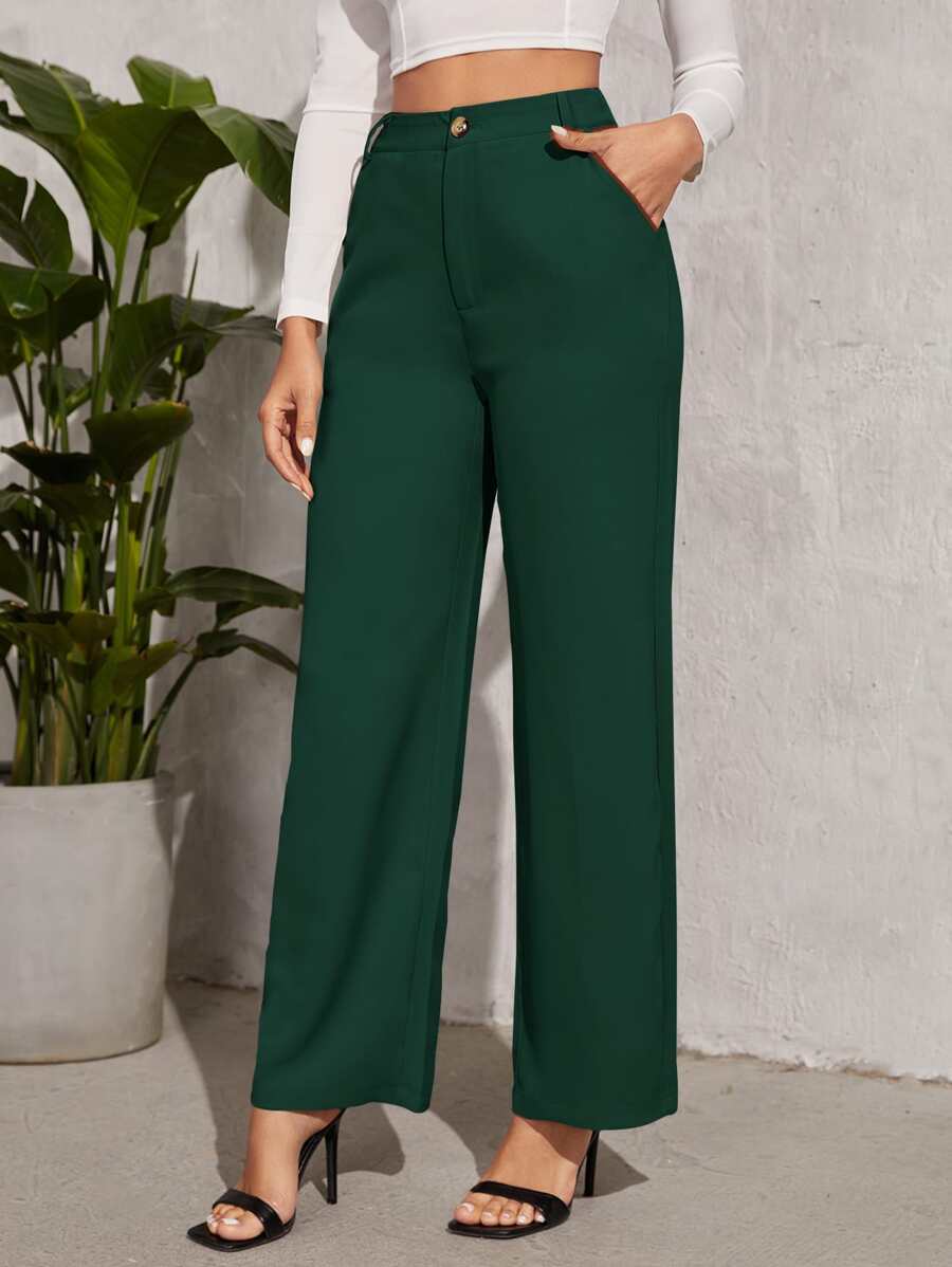 SHEIN Privé Solid Zipper Fly Pants