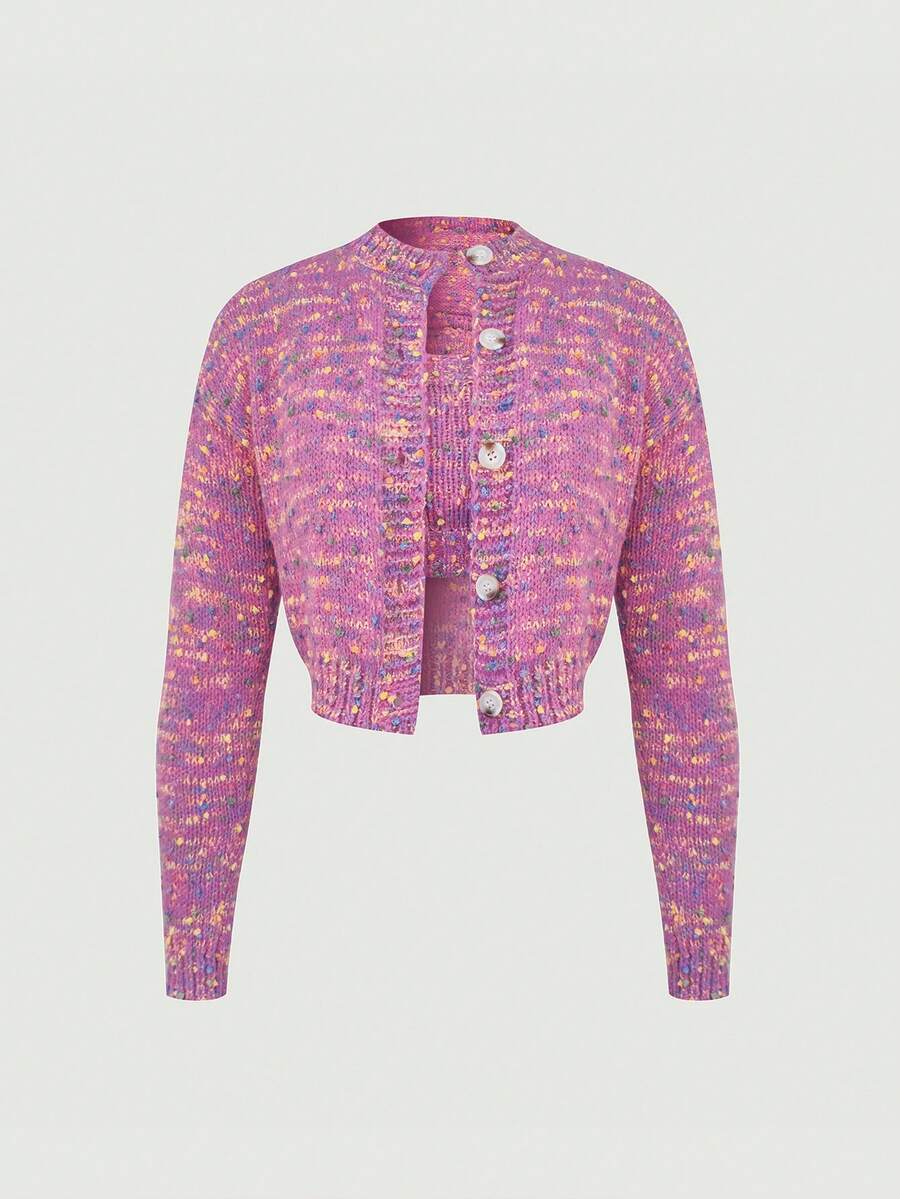 SHEIN MOD Space Dye Drop Shoulder Cardigan & Cami Knit Top