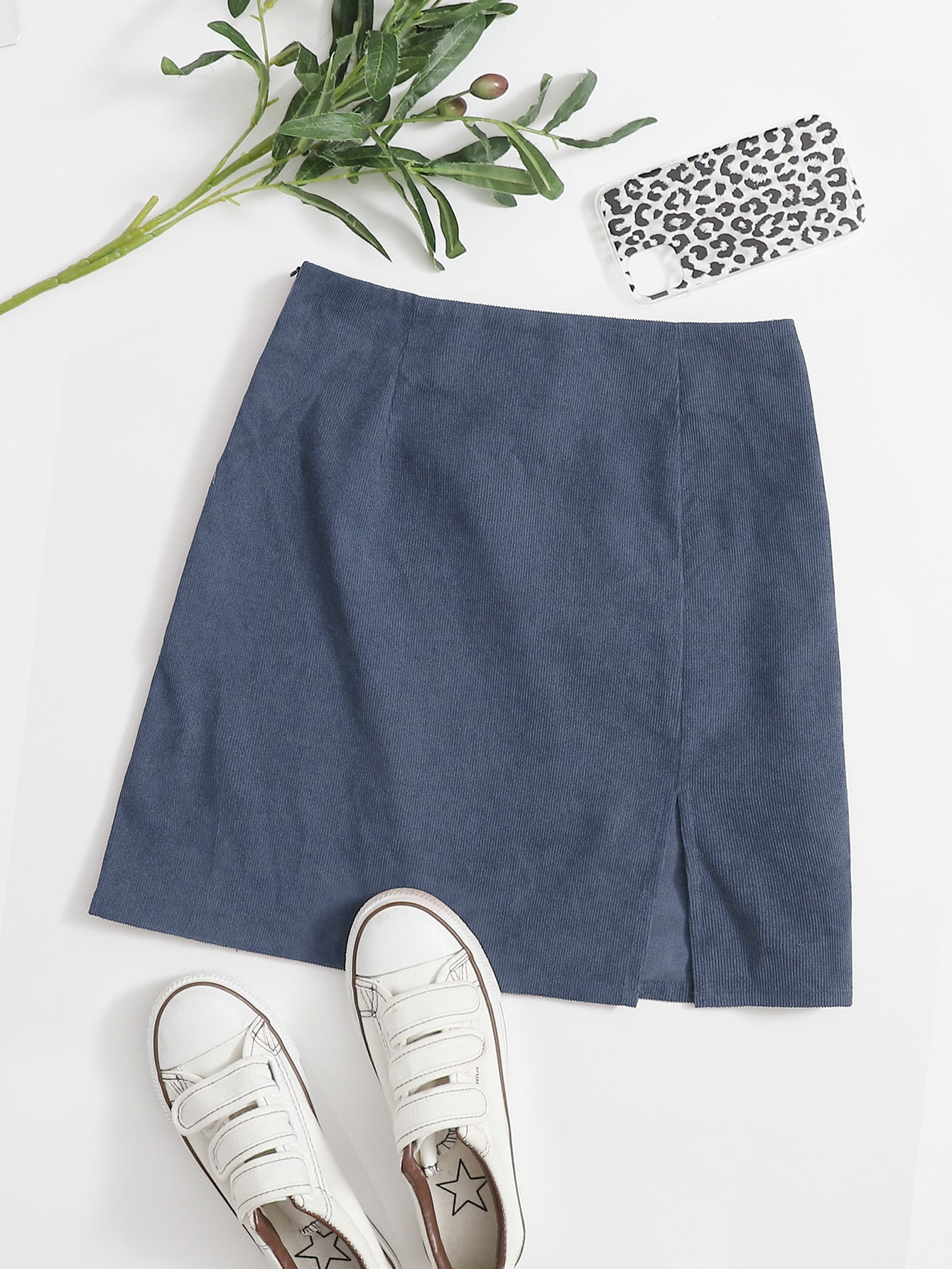 SHEIN EZwear Split Hem Corduroy Mini Skirt