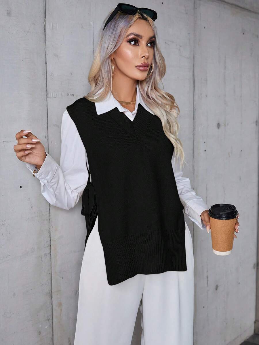 SHEIN Privé Split Knot Side Sweater Vest Without Blouse