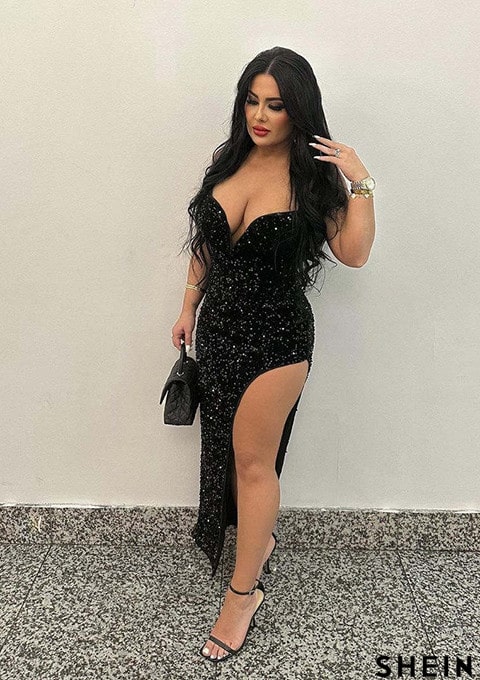SHEIN SXY Split Thigh Lace Up Backless Sequins Cami Dress