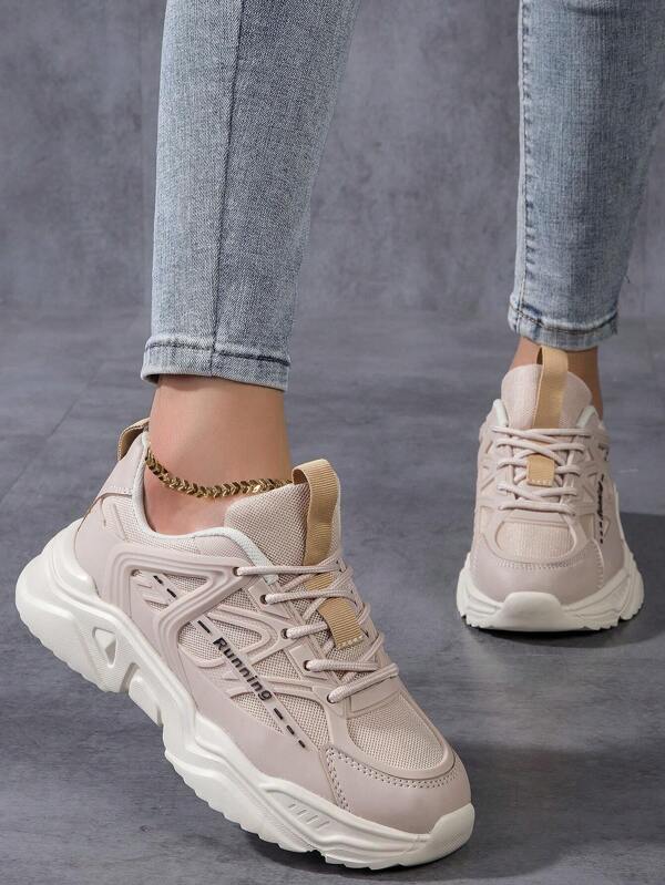 Sporty Front Chunky Sneakers For Women,Colorblock Graphic Lace-Up Lightweight Breathable Outdoor Casual Sports Shoes For Women