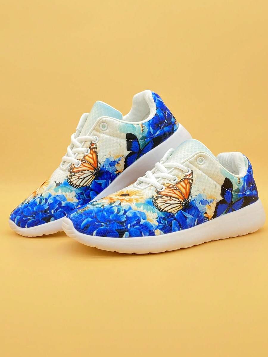 Sporty Sneakers For Women, Butterfly Pattern Lace-up Front Running Shoes