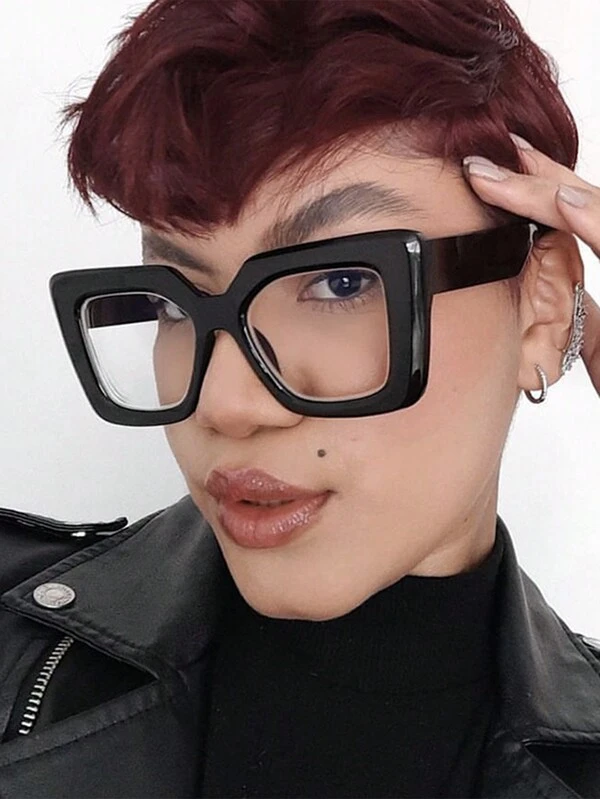 Square Flat Lens Large Frame, Ins Style Street Snap Individuality Glasses Frame, Can Be Fitted With Myopic Lenses