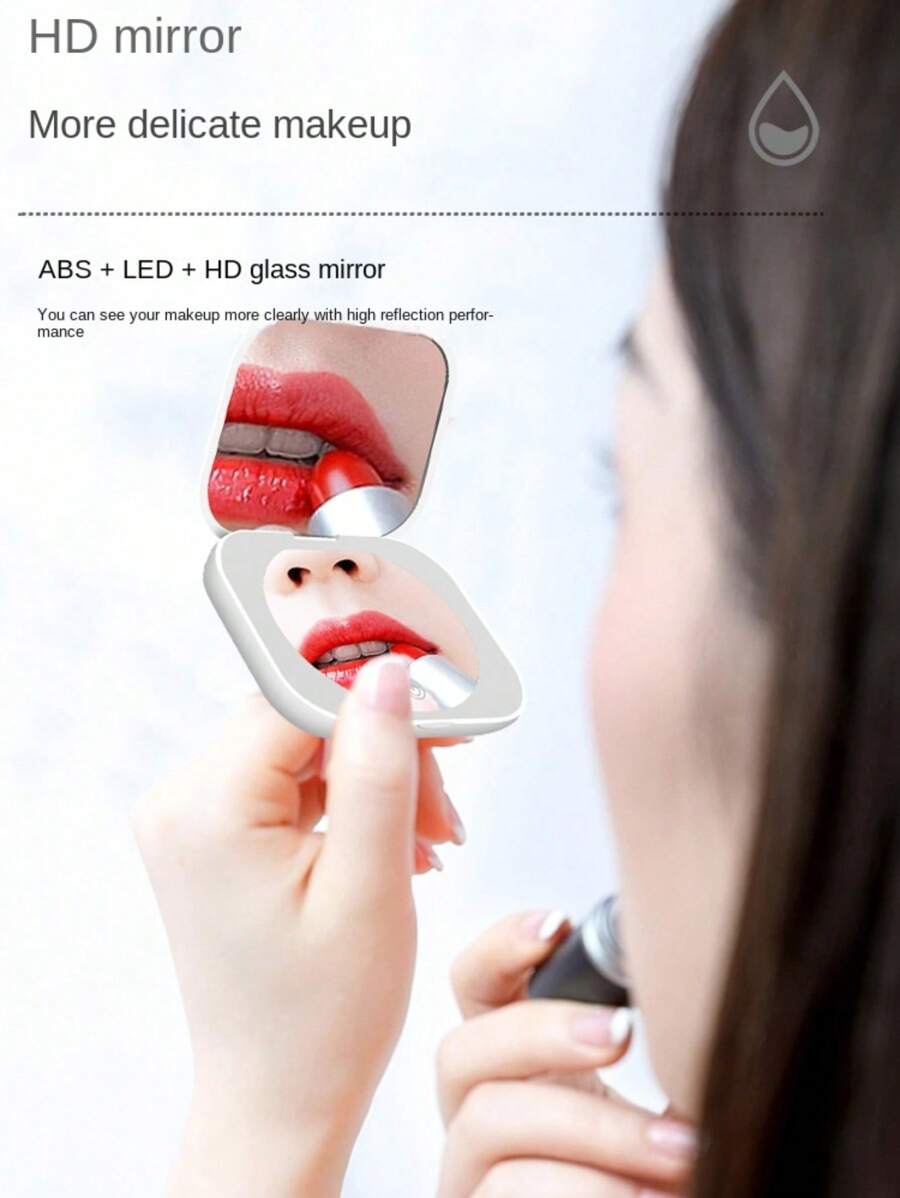 Square Led New Handheld Double-Sided Clamshell Round Pocket Folding With Light Led Makeup Mirror Compact 2X Magnification Cosmetic Mirror Princess Small Mirror Vanity Mirror For Home Tabletop Decoration, Bathroom, Dresser Vanity & Countertop Bedroom Travel