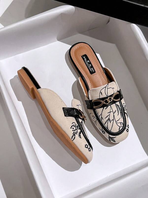 Square Toe Semi-Slippers Women'S Outerwear Flat Heelless Muller Shoes
