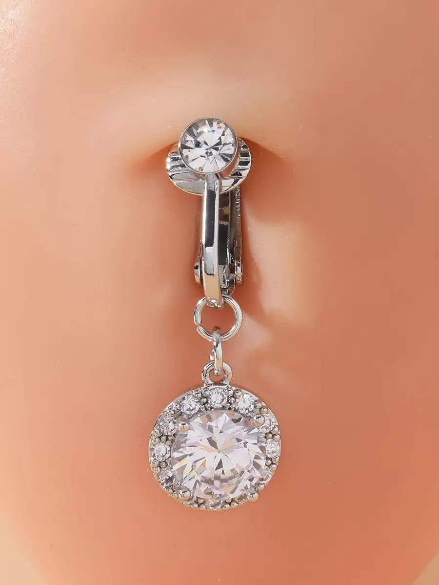 Stainless Steel, Cubic Zirconia Round Decor Navel Belly Cuff For Women And Men, Punk Piercing, A Fashionable Body Jewelry Gift For Any Occasion