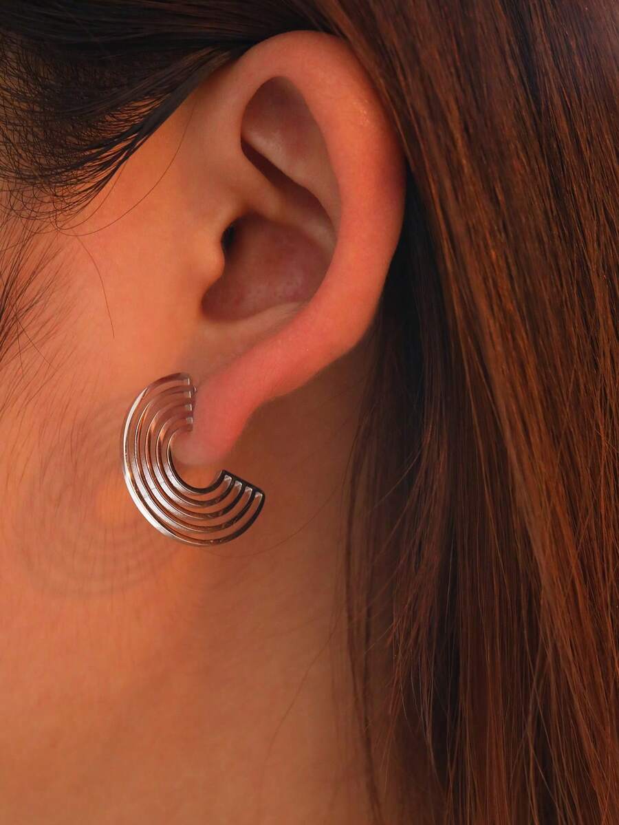 Stainless Steel Earrings C-Shape Hollow Geometric Exaggeration Fashion Temperament Stud Earrings For Women Jewelry Party Gifts