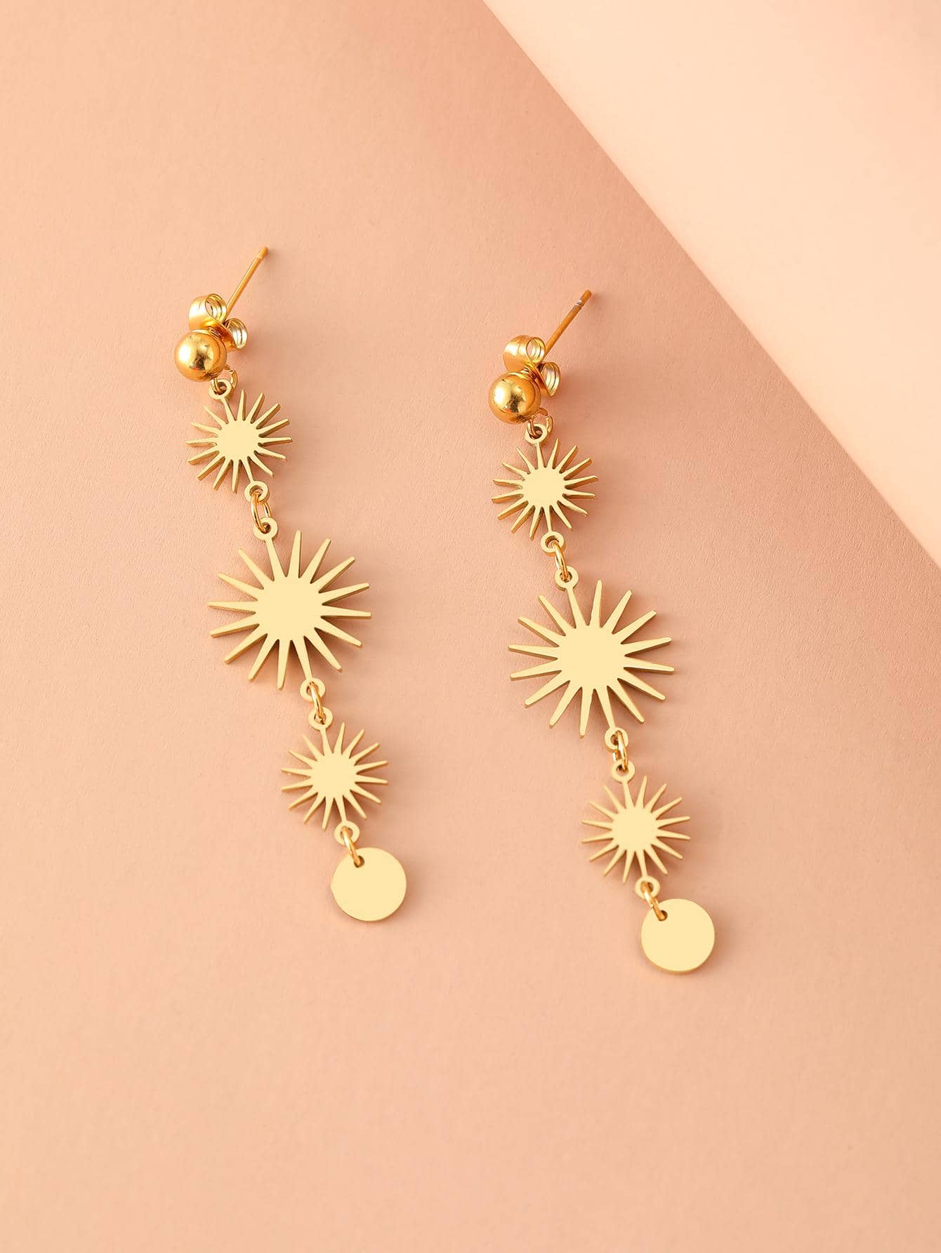 Aomogo Stainless Steel Earrings Vintage Sun Long Section Fashion Elegant Everyday Wear Pendants Earrings For Women Jewelry Gifts