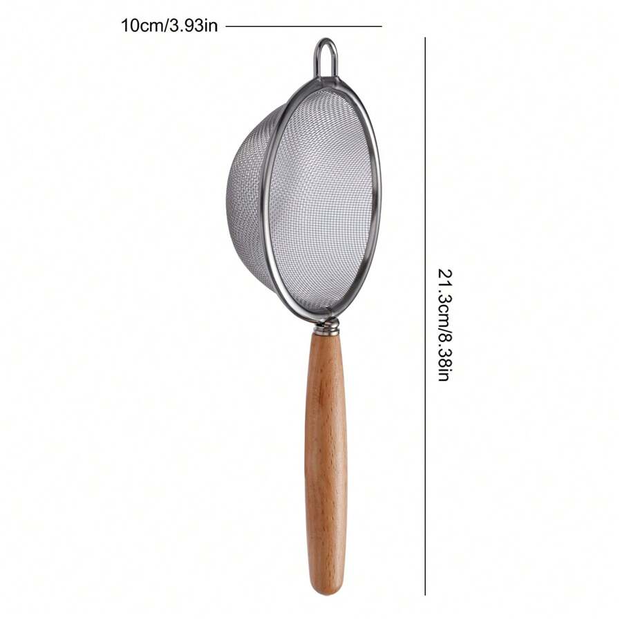 Stainless Steel Small Slotted Spoon With Wooden Handle For Filtering Soy Milk, Fruit Juice, Tea Residue, Flour, Oil, Baking Tool