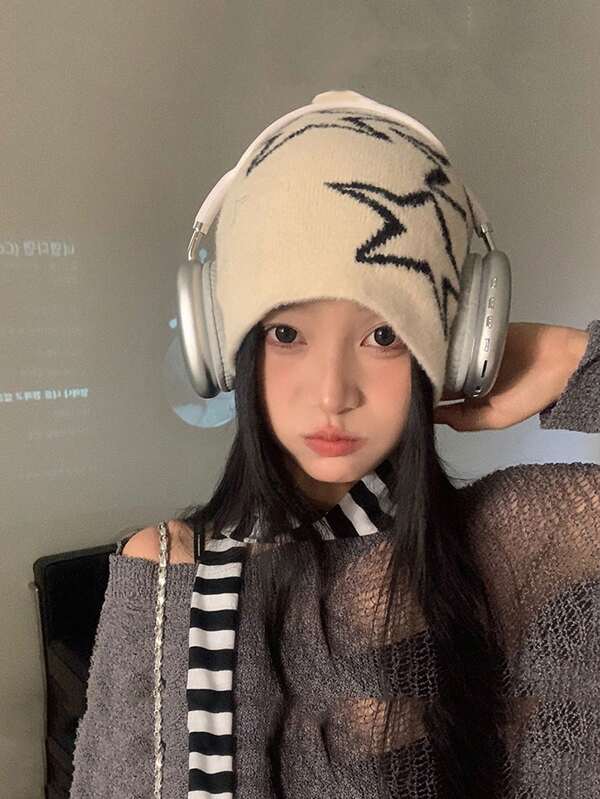 Star Pattern Knit Hat For Women To Keep Warm, Soft And Comfortable Headwear For Outdoor Activities In Winter