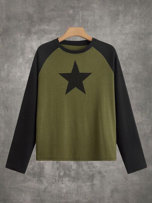 ROMWE Grunge Punk Star Print Colorblock Raglan Sleeve Tee