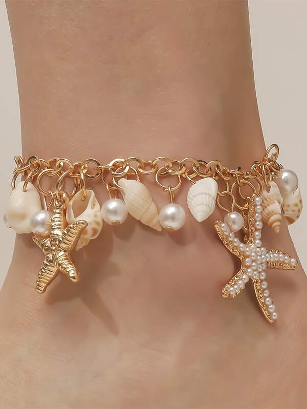Starfish Charm Faux Pearl Decor Chain Anklet