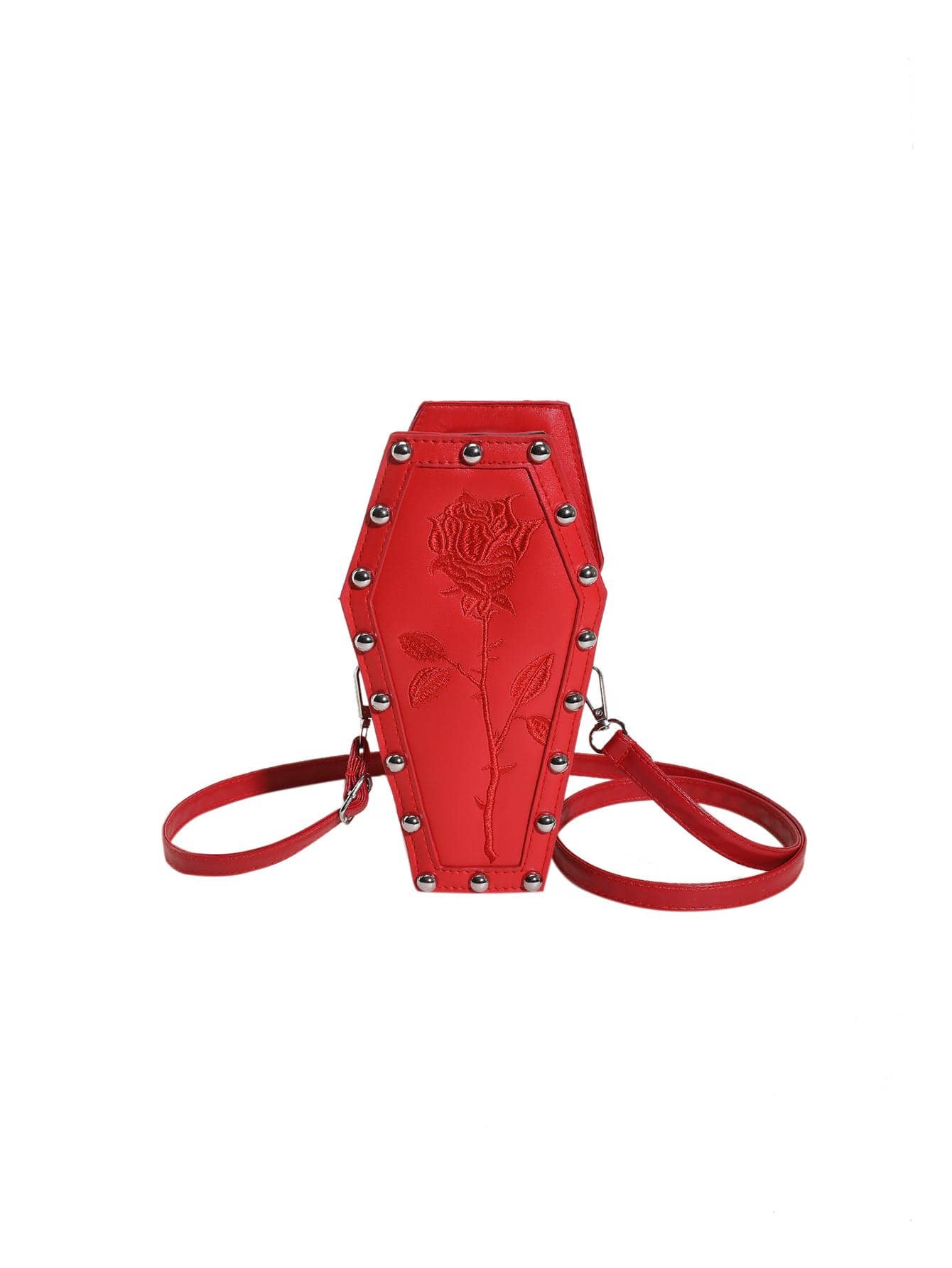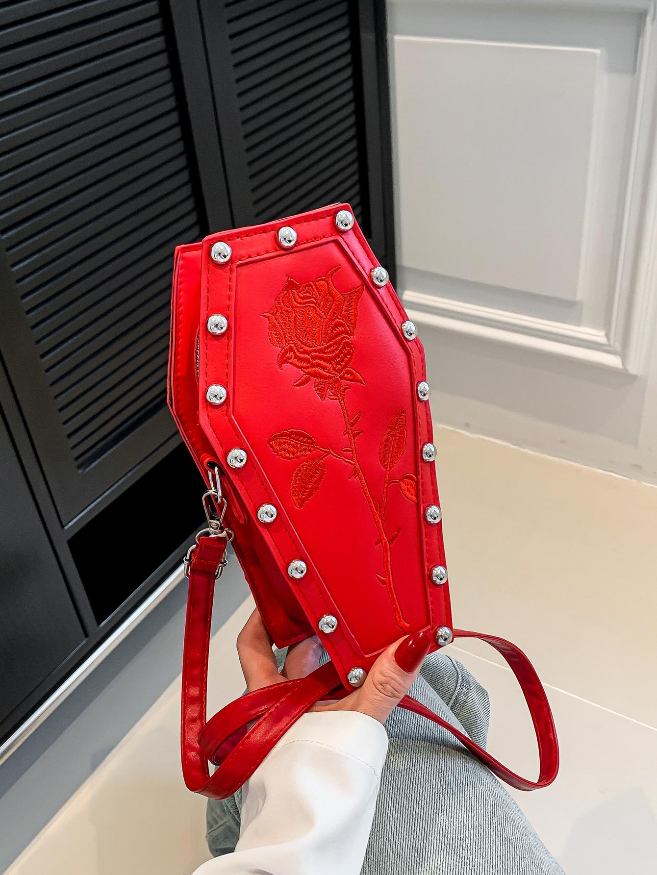 Steampunk Gothic Style Mini Fashionable Flower Embroidery & Rivet Decorated Women'S Bag, Punk Style, Rhombus Shape, Shoulder & Crossbody Bag For Teen Girls, Women, College Students, Party Girls, Perfect For , Gift, The Day Of The Dead