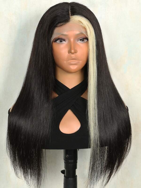 Straight T Part Lace Wigs With 613 Blonde Hair Real Human Hair Lace Frontal Closure Wigs With Front Baby Hair Pre Plucked Natural Hairline 16-20 Inch Wig Ombre Color