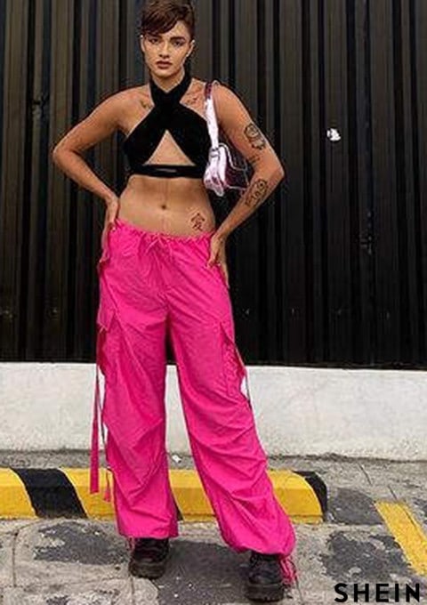 Street Vibes 90s Flap Pocket Drawstring Hem Cargo Parachute Pants